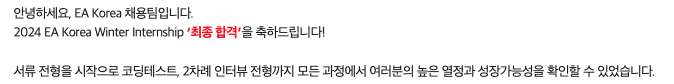 2024년 EA코리아 동계 인턴십 모집! 글로벌 게임 회사가 궁금하셨던 분들 모두 주목해 주세요! EA코리...
