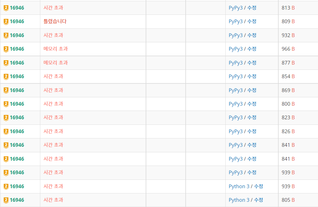 더 간단해 보이는 코드고 출력 결과도 잘 나오지만 메모리초과나 시간 초과가 계속 떴다.