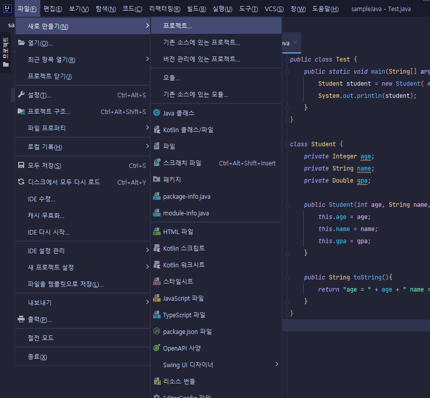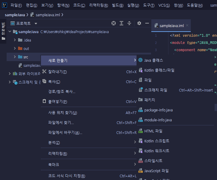 자바를 공부하기 위해서는 프로젝트를 생성해야 합니다.