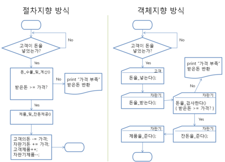 절차지향언어와 객체지향언어는 서로 다릅니다.