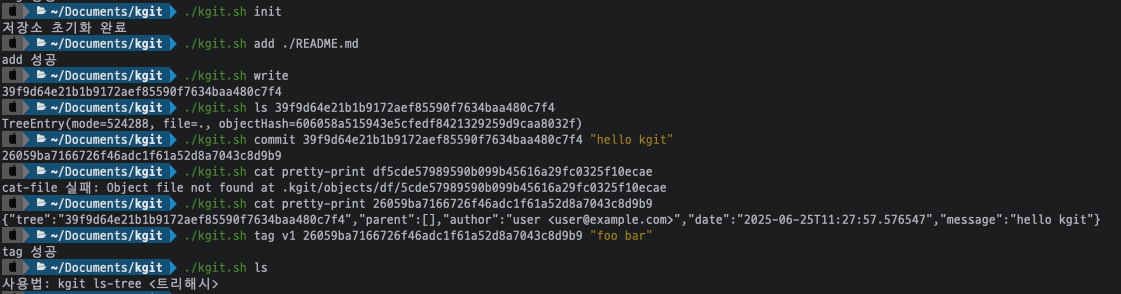- 객체는 .kgit/objects/ 디렉토리에 저장